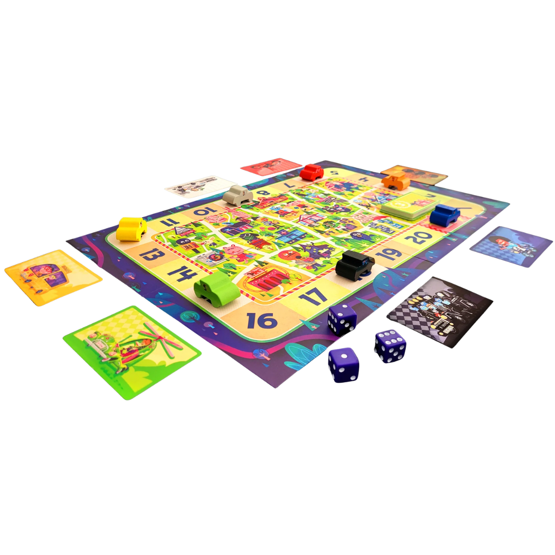 En este frenético juego de dados inspirado en el clásico Mahé, deberás decidir cuándo acelerar y cuándo frenar, calculando el riesgo en cada lanzamiento. ¿Te atreverás a seguir avanzando o preferirás jugar seguro? Cada movimiento puede hacerte ganar más regalos… o perderlos todos en una curva peligrosa.